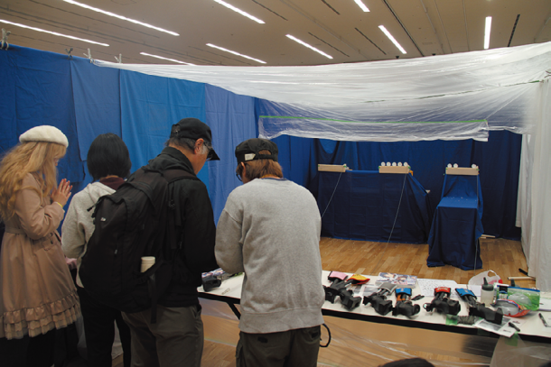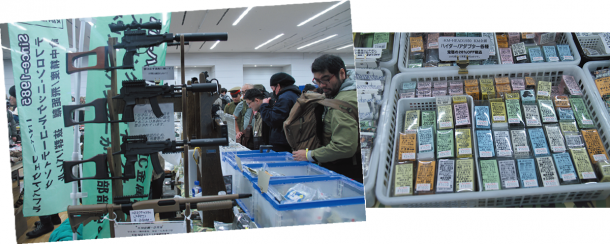 ライラクスも大阪から出店しており、くじ引きは大いに盛り上がりを見せていた。実物の光学機器も実際に手に取ってから購入することができる。新品の電動ガンも赤字覚悟の割引価格で販売されており、お買い得な商品が販売されていた