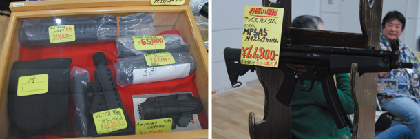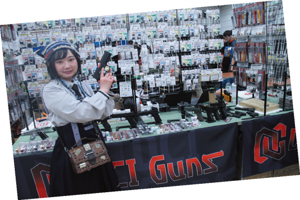 KM企画のブースではオリジナルパーツがふんだんに盛り込まれたカスタム銃がお手頃価格で販売されていた。商品知識も非常に豊富なため、カスタムの相談をしながらパーツを選ぶ楽しさがあるブースになっていた