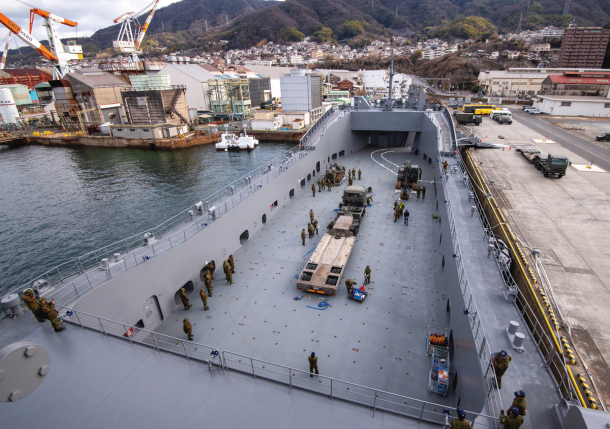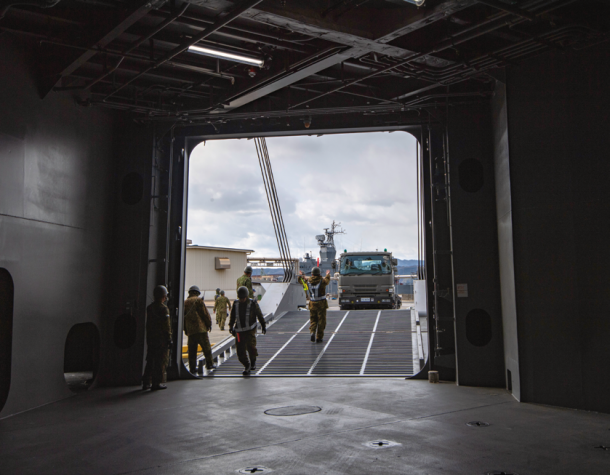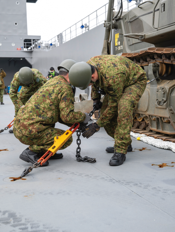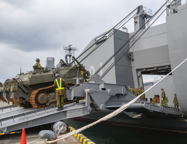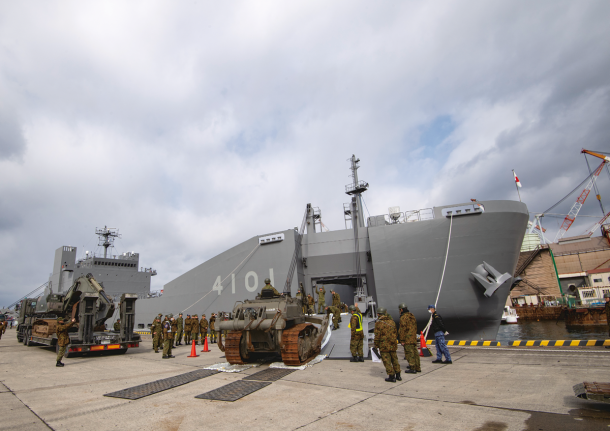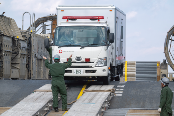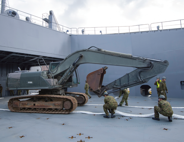 そして2025年3月24日に新編された海上輸送群が、今回の「南海レスキュー」に初参加した。陸海空自衛隊の共同部隊という位置付けではあるが、中核となっているのは陸上自衛官だ。現在輸送艦「ようこう」と「にほんばれ」の2隻のみを配備しているが、今後は同型艦が続々配備されていく。