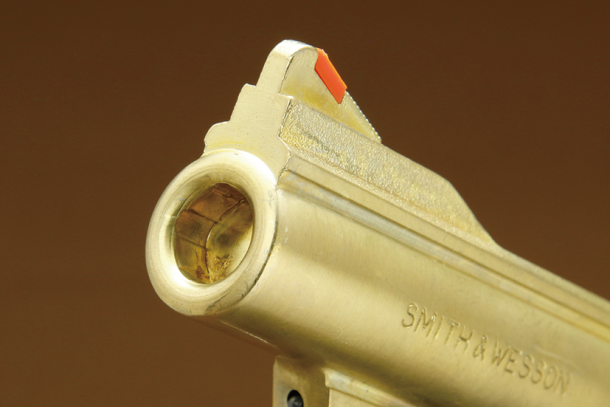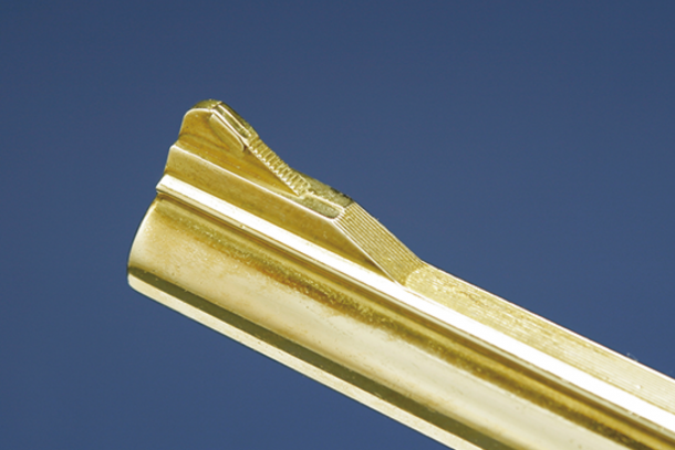 金属ニューM29は、リアルなプラスチック・ニューM29をベースに、さらにブラッシュアップして完成されたということができるだろう。そのため実銃を取材した当時のM29(M29-2)がそのままモデルガン化され、バレル長は6.5インチではなく6インチになっている。6.5インチが廃止されたのは1979年のことだ。一方、シリンダーのカウンターボアードとバレルのピン留めが廃止されるのは1982年のことであり、コクサイのニューM29にはそれらがあるから、1979年から1982年の間に製造された29-2ということになる。