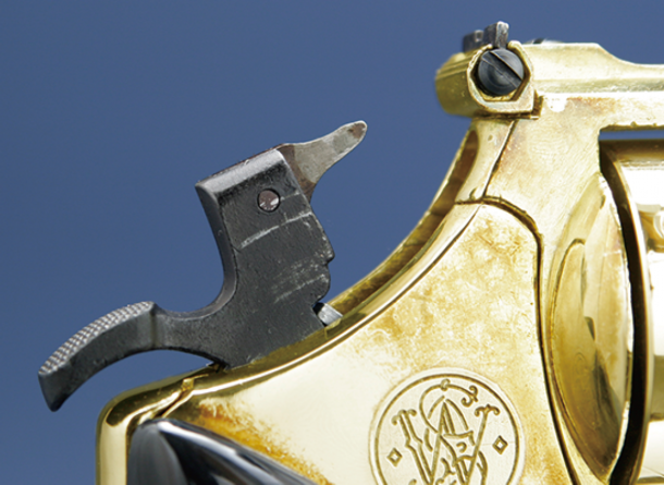 そこへ一石を投じたのがCMCだった。2026年3月号の当ページで取り上げた金属製のS&W M27と、このM29のNフレームリボルバーで、ほぼ実銃どおりのメカを実現したのだ。初めてトリガーを引ききらない限りハンマーがカートリッジ(プライマー)を打撃しないという安全機構のハンマーブロックが再現された。これは広告やカタログでもアピールされていたが、さらにリコイルシールドがフレーム側にあるというリアルな3本スクリューのサイドプレート形状もキッチリとリアルに再現されていた。MGC方式が当たり前と思っていた多くのファンには衝撃的な出来事だった。モデルガンでここまでできるのか!