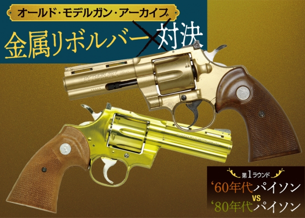 人気モデルはよく競作になる。かつて金属モデルガンの時代にも競作となったモデルは数多い。そんな中から、興味深いリボルバーを3機種選び、対戦形式で比較してみることにした。第1回は「60年代パイソン vs 80年代パイソン」
