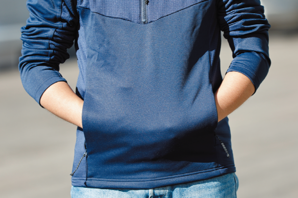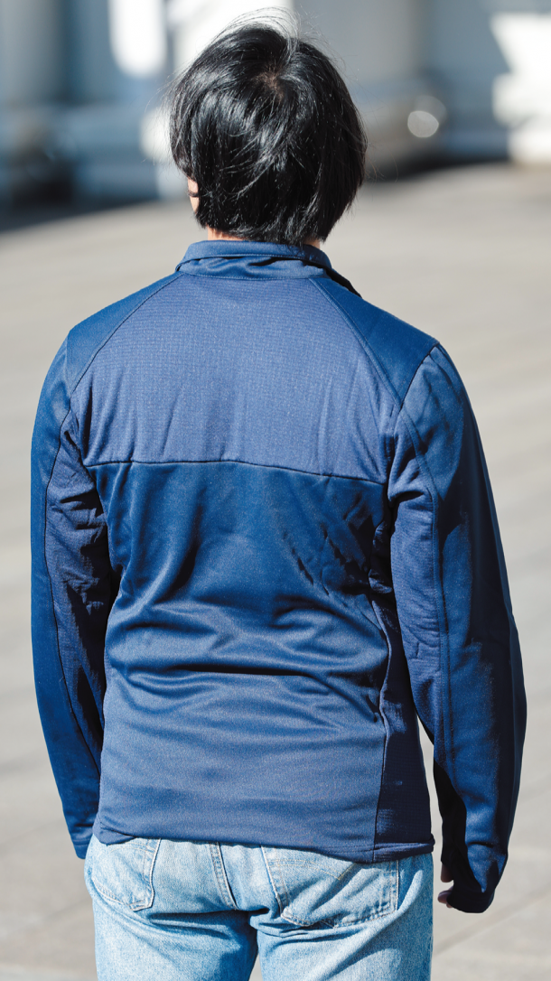シンプルな背面は引っかかりがなく、伸縮性や通気性にも富んでいる着重ねしやすいクォータージッブスタイルのベースレイヤー。暖かい季節には単体で、肌寒い季節にはフリースやソフトシェルジャケットと併用することで汗冷え等を防げる。