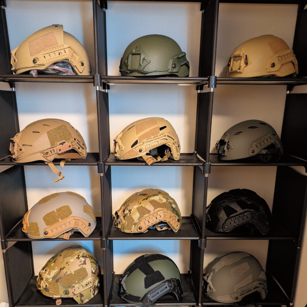 ヘルメットタイプは、軍や法執行機関に使用されているヘルメットデザインが多数あるので、用途や好みに合わせて選択可能だ。