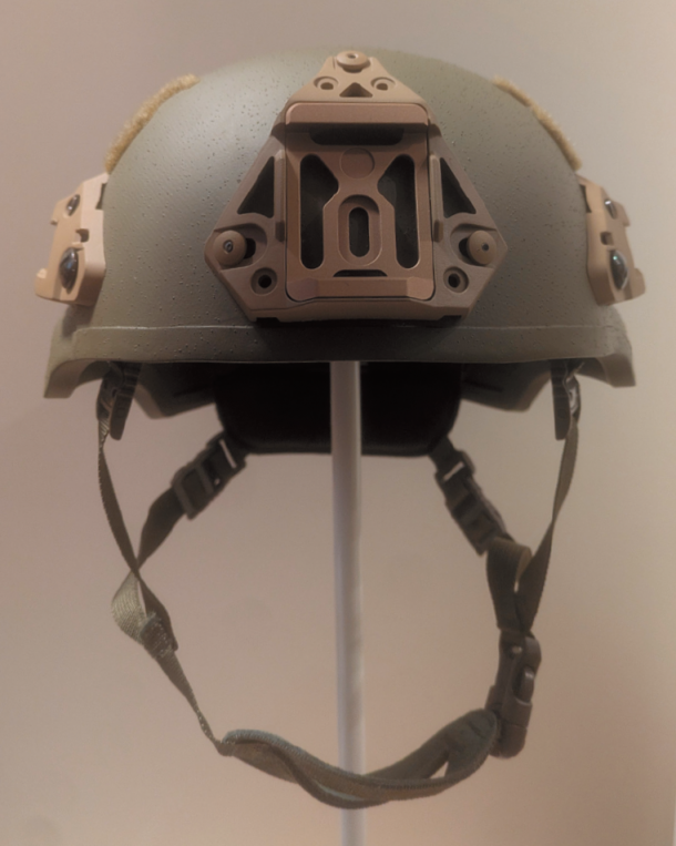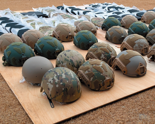 材質については、防弾ヘルメットはUHMW-PE(超高分子量ポリエチレン)とアラミドから選択可能である。アラミドは、装甲車から個人装備まで、多種多様な試験を含むオーストラリア国防軍全般の防弾性能試験を担当するBMT社によって性能試験が実施済みであり、UHMW-PEは他の試験場で実証済みとなっている。
