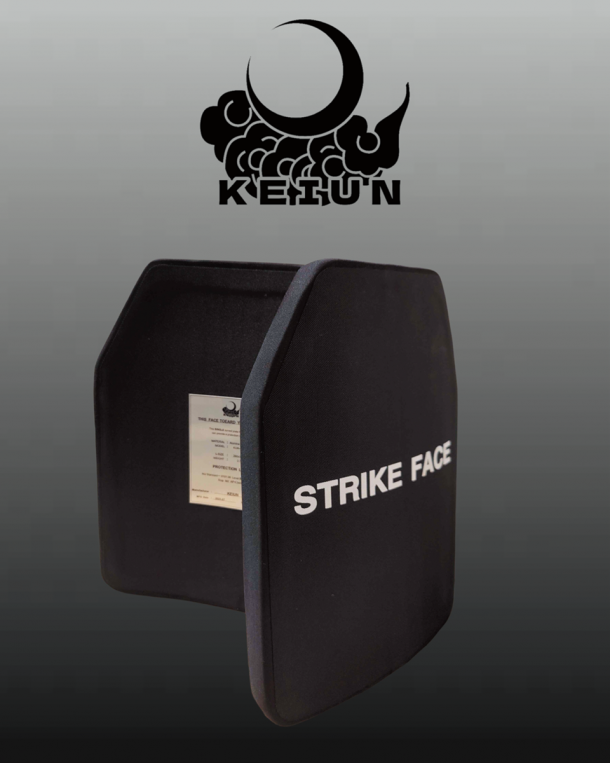 KEIUNの最上位モデルとなるLevel 4セラミックは、セラミックとUHMW-PE(超高分子量ポリエチレン)の複合素材で作られており、複数発の被弾にも対応できる設計となっている。同社によるとLevel 4規格のプレートでも貫通してしまう可能性のある7.62mm×54R徹甲弾を防ぐ性能があるとのことだ。