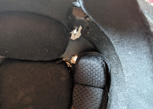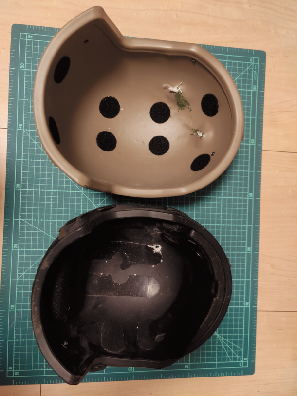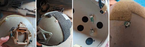 被弾した防弾ヘルメットと偽物の比較
