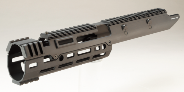 6061アルミ削り出しの堅固な一体型ハンドガード。レシーバー側にレール、ハンドガードにM-LOKを備えガタツキ感の一切ないモダナイズを実現する。