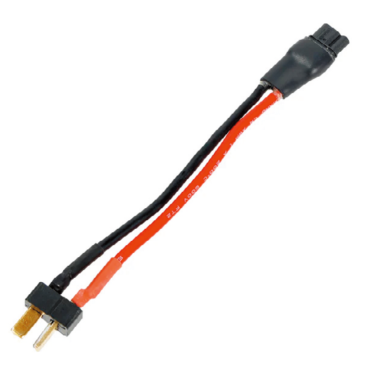 EVOLTに社外バッテリーを使用できる変換ケーブル。大容量で高性能なLiPoバッテリーなどに多く採用されているT型コネクター仕様。
