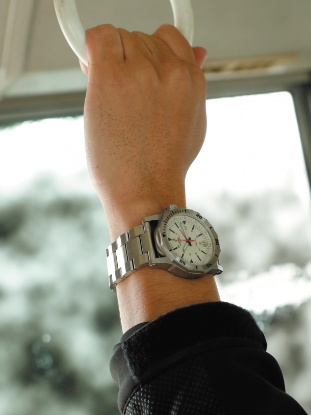 ケース自体はミリタリーウォッチらしく厚みがあるものが採用されており、高い堅牢性を確保している。100m防水も備わっており、非常に使い勝手がいいスペックにまとめられている