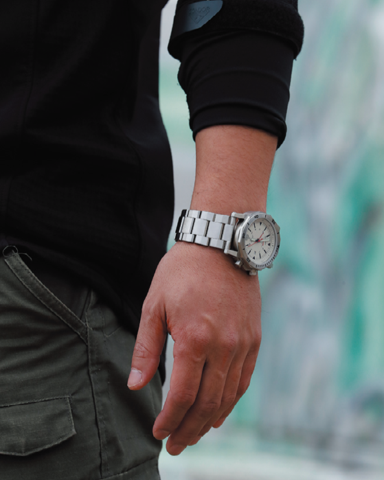 ミリタリーウォッチといえば高性能で無骨なイメージを持たれる方が多いはずだ。ミリタリーウォッチは過酷な条件下でも正確に時を刻むことが求められるため、防水性や視認性に優れる盤面、信頼性のあるムーブメントを兼ね備えるため、一般的な腕時計に比べて重量がある。また、優れた機能性を持つミリタリーウォッチを購入の選択肢に加えることは賢い選択であるが、ビジネスシーンでは悪目立ちしてしまう恐れもある。