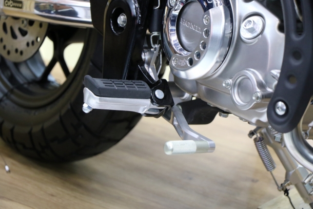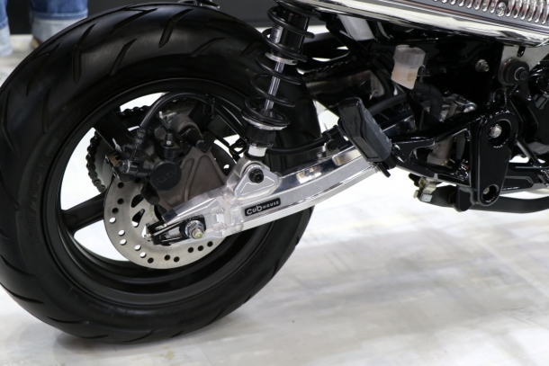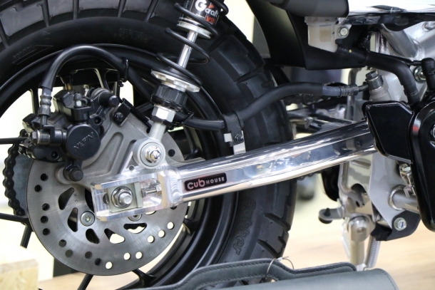 Dax125もGクラフトとCub HOUSEのコラボシート、Cub HOUSEのスイングアームへの換装、KITACOのフロントフェンダーなどこだわりのカスタムが施されていた。