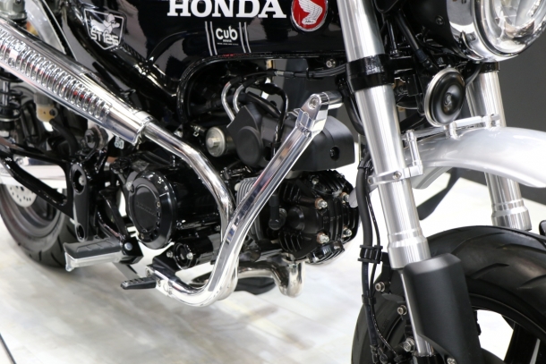 Z50Jを彷彿とさせるモンキー125。タンクのカラーリング、Z125と書かれたサイドカバー、GクラフトとCUB HOUSEのコラボの薄型シートなど、往年のモンキーを感じられる1台になっている。
