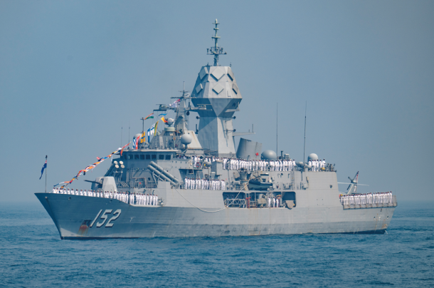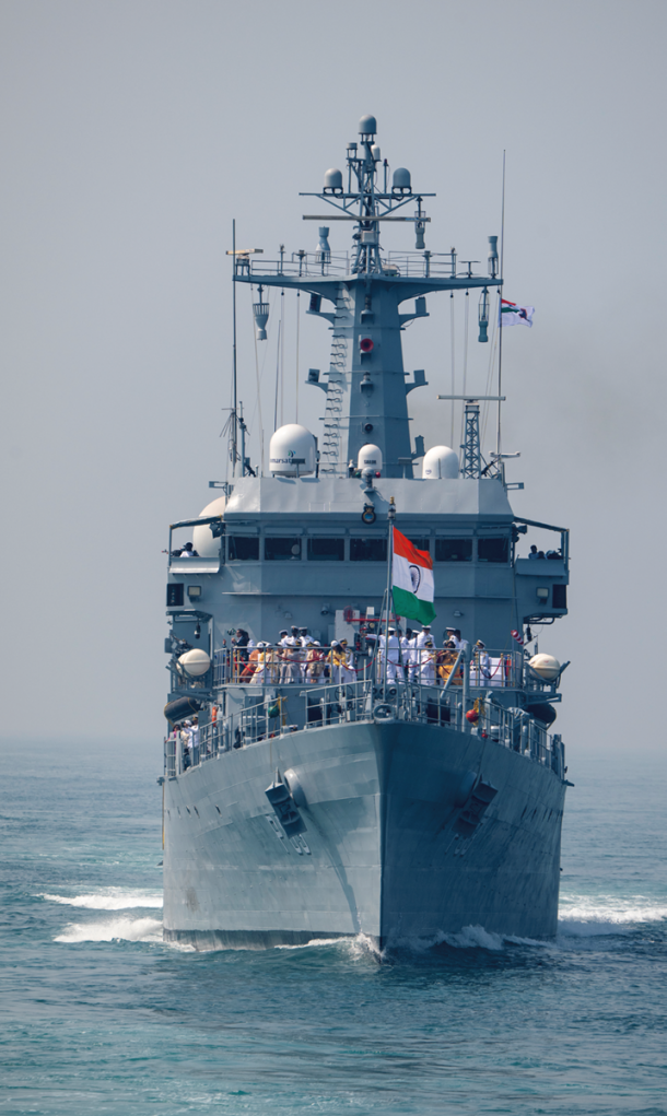 そして受閲艦隊は、ヴィシャカパトナム沖で錨泊。その各艦艇の前を観閲艦が通過し、受閲艦隊から敬礼を受ける、停泊式観艦式での実施となった。インドはすべて停泊式観艦式にて実施している。これはインドが特別なのではなく、海外では多く見られる実施方法だ。なお、日本の場合、観閲艦隊と受閲艦隊が洋上で移動しながらすれ違う移動式観艦式を実施している。
