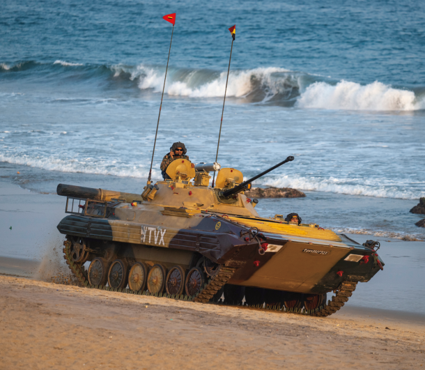 2月19日は海岸沿いに伸びる直線道路で市中パレードが行われた。主会場はラーマクリシュナビーチとなり、そこではインド陸軍のBMP-2による訓練展示などが行われた。基本的に招待者のみしかこのエリアに入ることは出来ないが、パレードの一部は、制限エリア外も行進するので、一般の人たちも楽しめた。