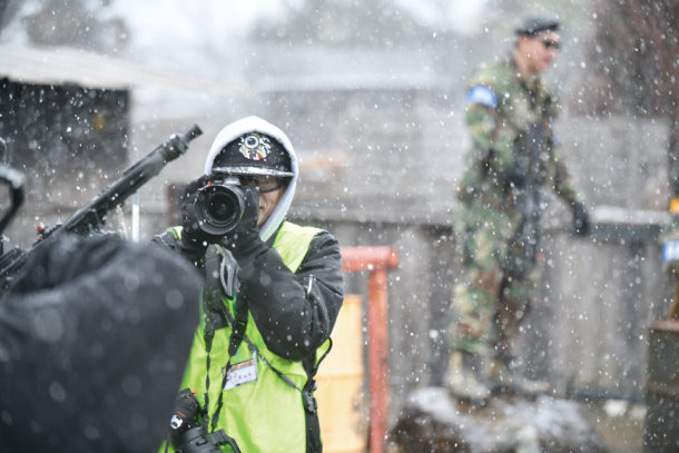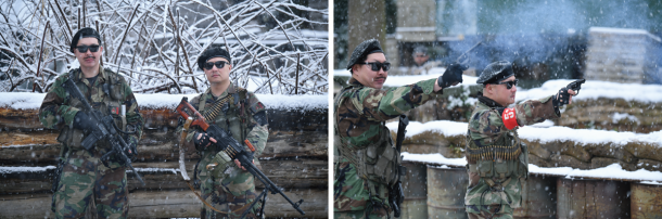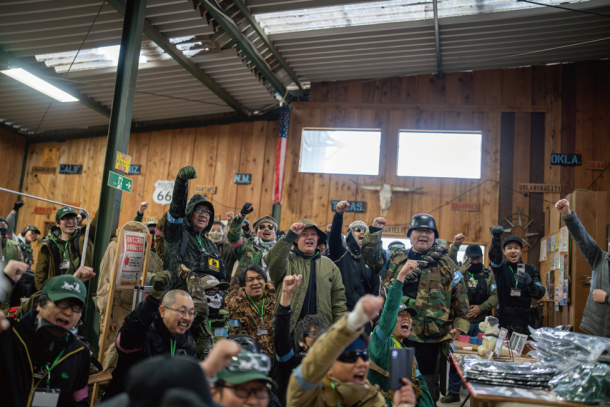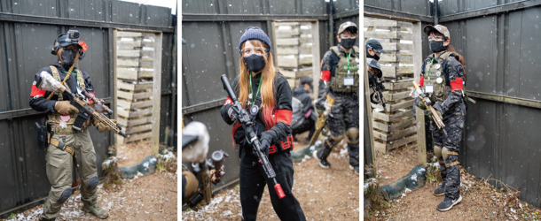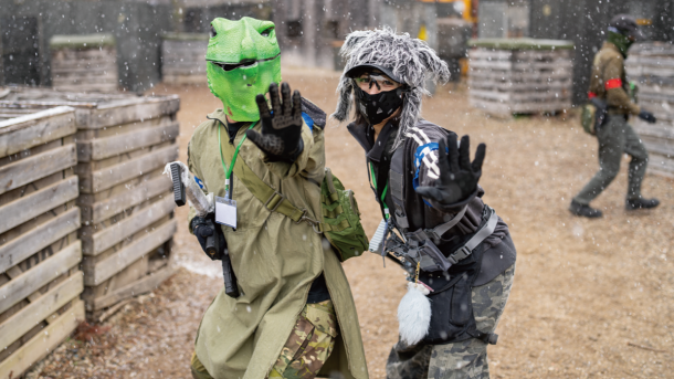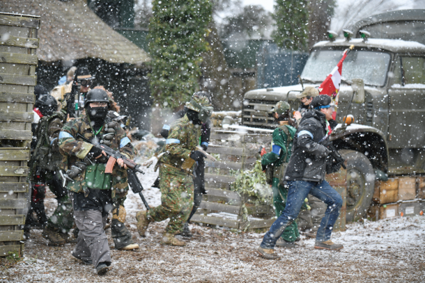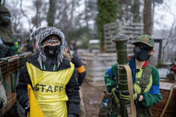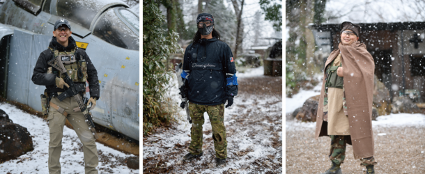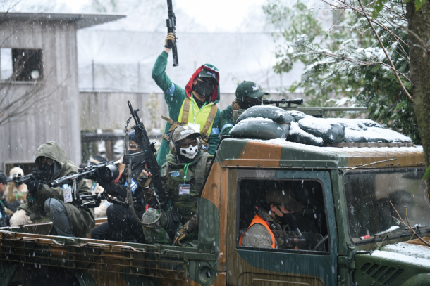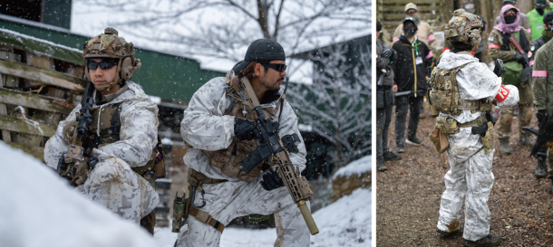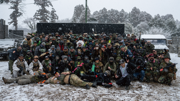 2026年1月号でご紹介したサバゲーパラダイス4周年祭「ビバ!バルベルデ祭」にてご紹介したトメール王国の国王 息根とめる対バルベルデ共和国セリア(サバパラが作った架空国家)方面軍将軍ドン・ディノス将軍(バルベルデ共和国の傀儡国家セリアに駐留する共和国軍の将軍)による熱戦は記憶に新しいだろう。今回のイベントは開会式までは曇り空であったが、第1ゲームからは雪が降り始め、昼頃から本格的に降ってくるという空模様だったが、参加者の熱気は高いまま。会場の様子やゲーム中の状況をTwitchから生配信を行いながらスタートしたのであった。