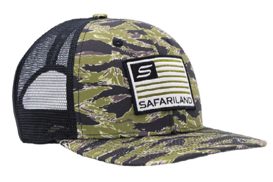 星条旗をモチーフにしたサファリランドロゴの刺繍フラッグパッチを前面にあしらったキャップ。後部はすべてメッシュ素材になっており通気性を十分に確保している。