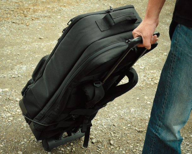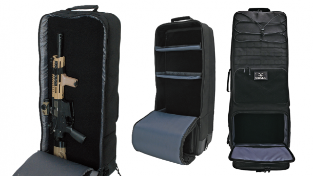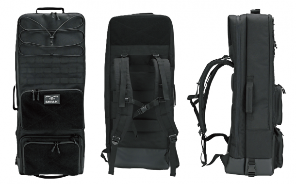 各部をただ強化するだけでなく、メインコンパートメントに収納した装備の形状に対して対応できるように芯材を各所に適切に配置している点は、ライフルと装備を一緒に運搬する際に重要なポイントである。