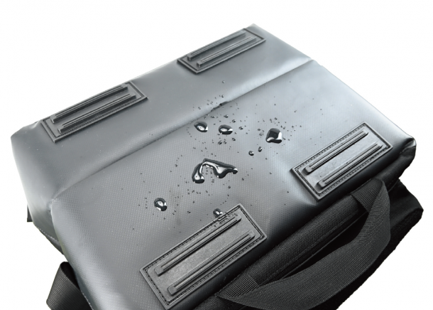 生地の裏にPVC加工を施すことで耐久性や汚れに強く、ほつれにくくなった。バックパックの底面、側面、背面の下部に撥水生地を用いたことで、泥や水滴が付いても拭いて簡単に落とすことが可能だ。