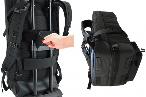 素材に高強度ポリエステル生地を採用したことで、耐久性と抜群の強度で変形がしにくい仕様になった。ショルダーストラップの取り付け部や各所の耐久性が必要な箇所は縫製を強化している。