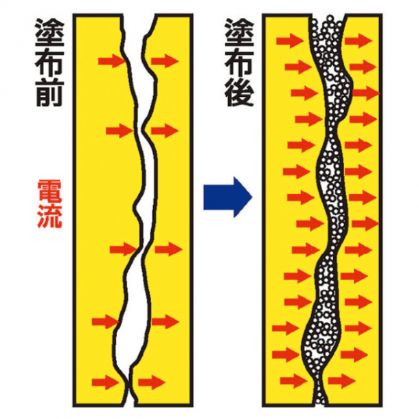 金属表面の凹凸をナノサイズの粒子で埋め、点接触を面接触にする接点改質剤である。金属を浸食しないので接点を傷めず、点接点から面接点にすることで通電効率を上げ、端子の負荷を軽減する。さらに、端子の接触不良や接点不良による機能低下や動作不良のトラブルを予防・改善し信頼性を高めてくれる。
