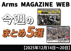 NEWS ニュース:その他 その他 2026/01/03 今週の注目ニュースをイッキ読み! トイガン、タクティカルギアなど新製品情報満載【2025年12月28日~2026年1月3日】 Arms MAGAZINE WEBにて今週投稿された記事5選をご紹介! 2025年12月28日~2026年1月3日の1週間で投稿された記事の中からアームズマガジンウェブ編集部が注目した5つをご紹介。今… (続きを読む) 月刊アームズマガジン その他 2025/12/28 モデルガン界のレジェンド・小林太三(タニオ・コバ)のアパレルが登場|パーカー&スウェットを徹底紹介 みんなで、小林太三を着よう。 ――レジェンドのスピリットを、日常にまとう。 モデルガン界を築いてきた小林太三氏のスピリットを、日常で楽しめるアパレルとして表現。スウェットとパーカーは、秋冬の主役として… (続きを読む) 月刊アームズマガジン その他 2025/12/27 今週の注目ニュースをイッキ読み! トイガン、タクティカルギアなど新製品情報満載【2025年12月21日~27日】 Arms MAGAZINE WEBにて今週投稿された記事5選をご紹介! 2025年12月21日~27日の1週間で投稿された記事の中からアームズマガジンウェブ編集部が注目した5つをご紹介。今週は12月2… (続きを読む) 月刊アームズマガジン その他 2025/12/25 「月刊アームズマガジン2026年2月号」12月26日(金)発売 巻頭特集やトイガン新製品の掲載情報をご紹介!! 月刊アームズマガジン 2026年2月号 12月26日(金)発売! HEADLINE NEWS リアルタイムの戦闘描写が、観客の視聴覚を攻撃する! 映画『ウォーフェア 戦地最前線』 台湾・台北市の世界貿… (続きを読む) 月刊アームズマガジン その他 2025/12/23 昭和大好きかるた 時代を超えた普遍の良き「何か」を振り返る 第43回「ろ」 時代を超えた普遍の良き「何か」を振り返る 第43回 ろ ロボット 令和となってはや幾年。平成生まれの人たちが社会の中枢を担い出すようになった今、「昭和」はもはや教科書の中で語られる歴史上の時代となりつ… (続きを読む) 月刊アームズマガジン その他 2025/12/20 今週の注目ニュースをイッキ読み! トイガン、タクティカルギアなど新製品情報満載【2025年12月14日~20日】 Arms MAGAZINE WEBにて今週投稿された記事5選をご紹介! 2025年12月14日~20日の1週間で投稿された記事の中からアームズマガジンウェブ編集部が注目した5つをご紹介。今週は「月刊ア… (続きを読む) 月刊アームズマガジン その他 2025/12/13 今週の注目ニュースをイッキ読み! トイガン、タクティカルギアなど新製品情報満載【2025年12月7日~13日】 Arms MAGAZINE WEBにて今週投稿された記事5選をご紹介! 2025年12月7日~13日の1週間で投稿された記事の中からアームズマガジンウェブ編集部が注目した5つをご紹介。今週は「月刊アー… (続きを読む) 月刊アームズマガジン その他 2025/12/13 着用シーンを選ばないエレガントなモデル ミリタリーウォッチ「MTM WATCH H-61」 ミリタリーウォッチといえば高性能で無骨なイメージを持たれる方が多いはずだ。ミリタリーウォッチは過酷な条件下でも正確に時を刻むことが求められるため、防水性や視認性に優れる盤面、信頼性のあるムーブメントを… (続きを読む) 月刊アームズマガジン その他 2025/12/12 【ナイフダイジェスト WEB版】20 NEWS:アームズマガジン”SAKURAウェブナイフショウ”に参加!! & 2026年4月までのナイフショー情報 アームズマガジン”SAKURAウェブナイフショウ”に参加!! 2025年の12月13日(土)、14日(日)の両日、SNSのX上で『SAKURAウェブナイフショウ』が開催される。 参加者はハッシュタグ(… (続きを読む) 月刊アームズマガジン その他 2025/12/10 モキナイフ×山秀×HOBBY JAPANのトリプルネーム・ナイフ、誕生!!【ナイフダイジェスト・アームズマガジン版】 人類最古の道具とも言われる刃物。その中でも、実用性と収集性が並び立つアイテムである「ナイフ」にフォーカスして、最新情報をお届けしよう TOPIC 限定生産!! 三位一体を体現するコラボモデル、販売予約… (続きを読む) 月刊アームズマガジン その他 2025/12/09 昭和大好きかるた 時代を超えた普遍の良き「何か」を振り返る 第42回「れ」 時代を超えた普遍の良き「何か」を振り返る 第42回 れ レンタルビデオ 令和となってはや幾年。平成生まれの人たちが社会の中枢を担い出すようになった今、「昭和」はもはや教科書の中で語られる歴史上の時代と… (続きを読む) 月刊アームズマガジン その他 2025/12/06 今週の注目ニュースをイッキ読み! トイガン、タクティカルギアなど新製品情報満載【2025年11月30日~12月6日】 Arms MAGAZINE WEBにて今週投稿された記事5選をご紹介! 2025年11月30日~12月6日の1週間で投稿された記事の中からアームズマガジンウェブ編集部が注目した5つをご紹介。今週は「月… (続きを読む) 月刊アームズマガジン その他 2025/11/29 今週の注目ニュースをイッキ読み! トイガン、タクティカルギアなど新製品情報満載【2025年11月23日~29日】 Arms MAGAZINE WEBにて今週投稿された記事5選をご紹介! 2025年11月23日~11月29日の1週間で投稿された記事の中からアームズマガジンウェブ編集部が注目した5つをご
